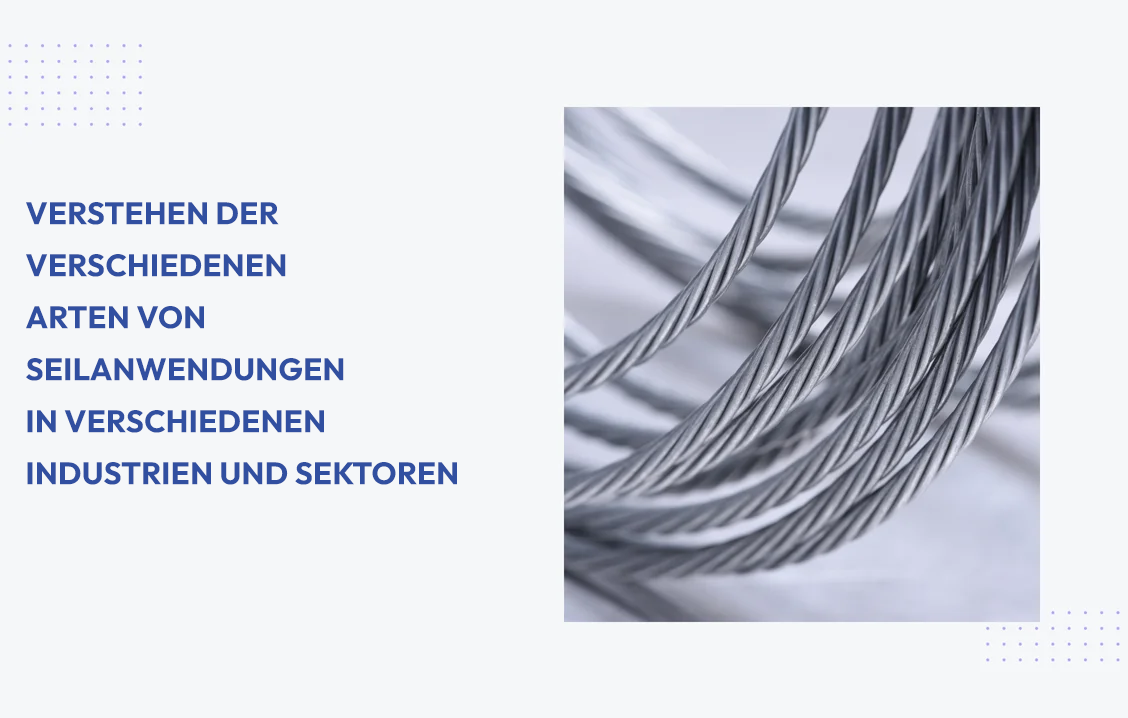 Drahtseile sind in Edelstahl- und verzinkten Stahlzusammensetzungen erhältlich. Edelstahl- und verzinkte Stahldrahtseile werden für verschiedene industrielle Anwendungen verwendet, einschließlich Rigging, Heben, Versorgung, Meer und Infrastrukturprojekten. Darüber hinaus können sie in industriellen und häuslichen Anwendungen eingesetzt werden.